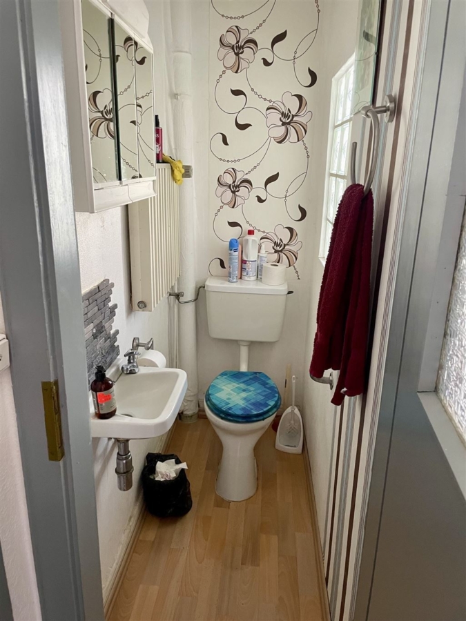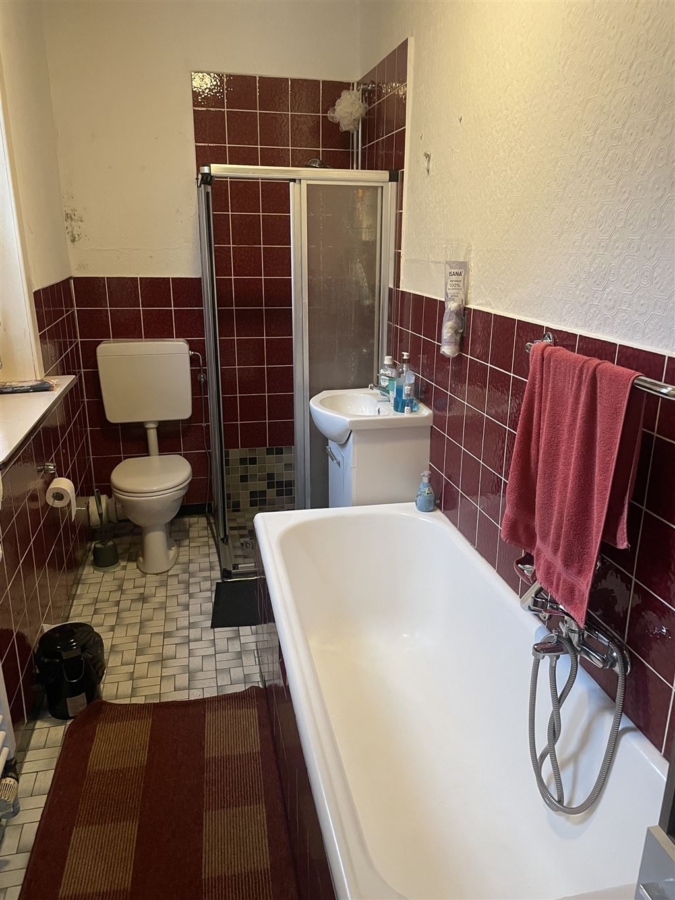 Das teilunterkellerte Haus verfügt über 6 Zimmer, eine Küche, ein Gäste-WC und ein Tageslichtbad mit Badewanne und Dusche. Derzeit ist das Haus vermietet. Die Mieteinnahmen betragen monatlich 950,00 € zzgl. 300,00 € Nebenkosten.