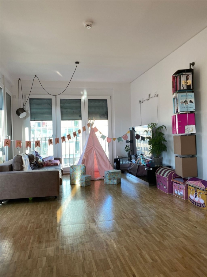 Ihr neues Zuhause befindet sich im 5. Obergeschoss einer modernen Wohnanlage an der Donnersbergerbrücke. Die sich in der Wohnung befindliche Einbauküche, der Kleiderschrank im Masterschlafzimmer und den Schrank im Kinderzimmer wird gegen Ablöse (5.000 €) zur Verfügung gestellt.