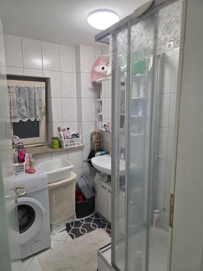 Das Badezimmer ist mit einer Dusche ausgestattet.